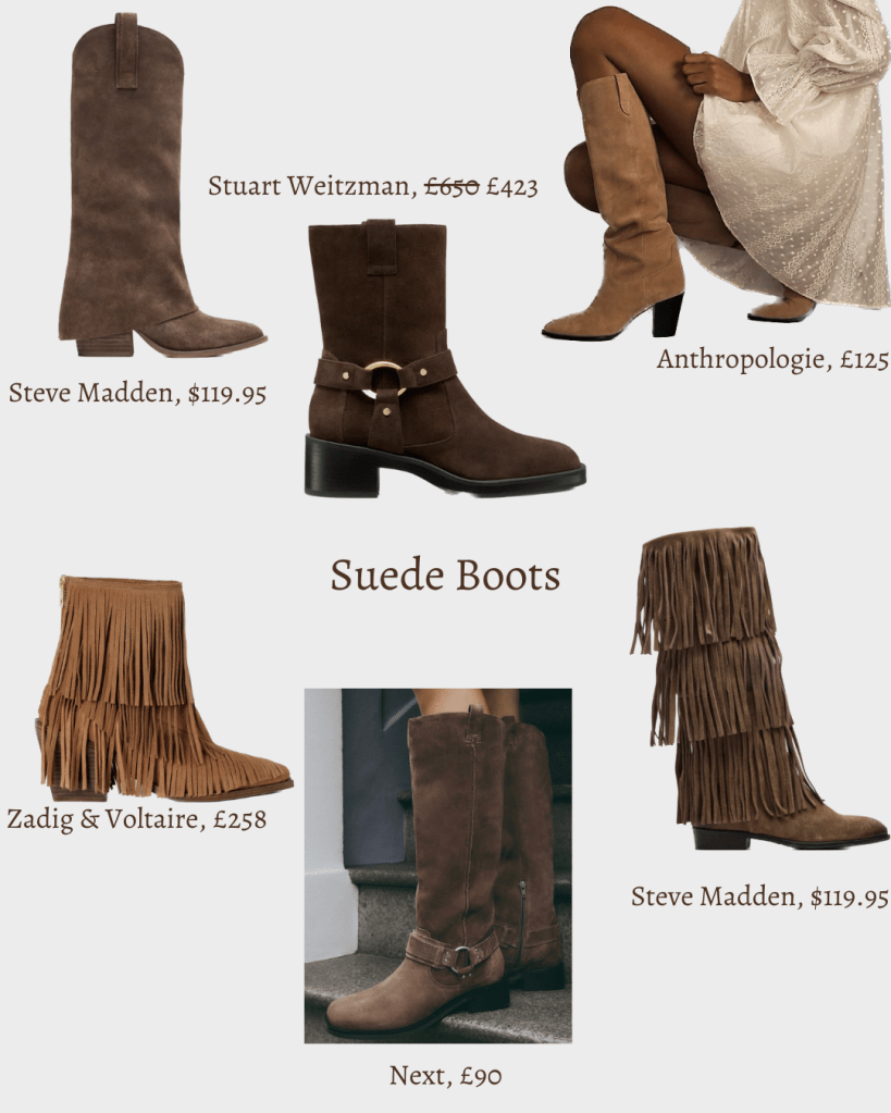 Usually, these different shape boots are in leather, but I see a movement towards suede. The good thing about boots is each material and shape never fully go out of style.